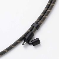 ストラップの長さは最大1.5mまで調整可能。ストラップの両端にはキャップ付きのUSB Type-Cコネクタを備え、充電器やモバイルバッテリーと組み合わせることで充電できます。サビに強く信号劣化を抑える金メッキピンを採用し、最大60Wの送電が可能。