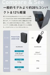 20000mAhで世界最小のモバイルバッテリー