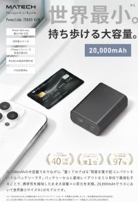 MATECH株式会社は、容量20000mAhのモバイルバッテリー「PowerCube 20000 45W」を2月12日(木)に発売しました。同容量クラスにおいて世界最小を謳うモバイルバッテリー。面積は名刺とほぼ同じ大きさで、従来モデルから約30%のサイズダウンを実現しています。価格は5,990円。カラーはブラックとホワイト。