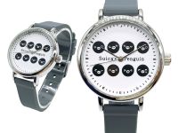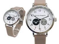 JR東日本「Suicaのペンギン」をモチーフにした大人用腕時計(男女兼用)で、ベルトカラーはモカとグレーの2色展開。モカにはSuicaのペンギンと子ペンギンを、グレーにはSuicaのペンギンのいろいろな顔をデザインしています。