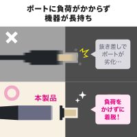 また、ケーブルに足などが引っかかった際にはマグネット部分が安全に外れる構造を採用、機器の転倒や端子破損のリスクを低減します。映像伝送は8K/60Hzや4K/120Hzなどに対応し、DynamicHDR、48Gbpsの高速伝送をサポートします。信号劣化を抑える金メッキ端子と、耐久性に優れたナイロンメッシュ被覆を採用しています。ケーブル外径は5.4mm。