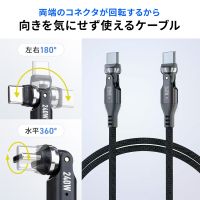 水平・垂直方向に自在に回転する1.8mのUSB Type-Cケーブル