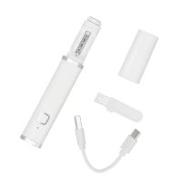 本体サイズは約2.1×2.1×13.1cm(幅×奥行き×高さ)、重量は約48g。内蔵電池はリチウムイオン電池(3.7V/350mAh)。定格入力はDC5V 1A。充電時間は約2時間、連続使用時間は約25分。お掃除用ブラシ、充電用USBケーブル(約10cm)が付属します。