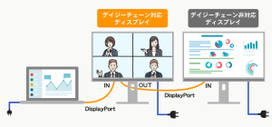 液晶ディスプレイ同士をDisplayPortケーブルで接続し、マルチディスプレイ環境を構築できるデイジーチェーンに対応。本体サイズと重量は、スタンドありの場合約539×227×443~532mmで約5.3kg、スタンドなしの場合約539×49×315mmで約3.4kg。VESA100×100mmに対応し、VESA75×75mm対応のミニPCを設置できるアタッチメントホールが付属。また、スタンドは左右90°の回転が可能で、縦位置でも利用できます。