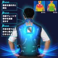 リモコン操作により、ペルチェ冷却のON/OFFやファンの風量(強/弱)の切り替えが可能。ペルチェのみ、ファンのみの運転にも対応します。服の内側には調整ベルトを備え、冷却プレートを背中に密着させることで冷却効果を高められます。冷却ユニットは取り外し可能で、ウェア部分は洗濯できます。