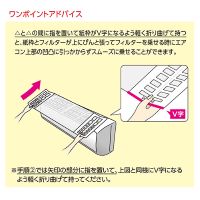 エアコン上部の吸気口に設置し、ホコリ汚れを防ぐフィルター。エアコン上部に溜まるホコリやゴミをキャッチすることで、内部フィルターの汚れを軽減するとのこと。