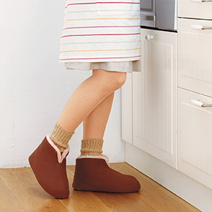 足冷えの悩みから解放するために開発された足冷え専用保温スリッパです。内側に断熱エアヒート層を採用。多層構造で外からの冷気をカットし、中の熱を逃しません。室内での冷えが気になる足先から足首まで強力に保温できるので、室内での足冷えに適したスリッパです。