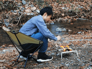 500mlのペットボトル並の収納サイズで、約590gという軽量なバーベキューグリル。焚き火網を広げて脚部を引き出し、グリル部分のパーツをセットするだけで設置は完了。初めてでも簡単に組み立てることが出来るそうです。