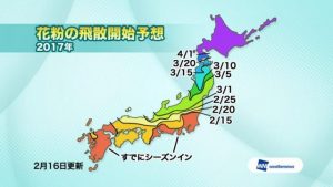 17日に花粉シーズン入りした1都5県は、東京都、神奈川県、千葉県、埼玉県、茨城県、宮崎県。16日には、愛知県、三重県、山口県、福岡県、熊本県が花粉シーズンとなっているため、すでに1都16県で花粉が飛散していることになります。