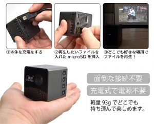 操作は至って簡単。本体をUSB-ACチャージャーを使用し充電後、パソコンを使用して再生したいファイルをmicroUSBに入れて、本体に挿入、あとは電源を入れて、ファイルを再生するだけです。