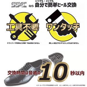 ドン・キホーテから発売された革靴「スライドソールチェンジ(SSC)」は、かかとがスライド式になっていて、すり減ったら簡単に交換できるようになっています。もちろん、簡単に外れないようロック機構が付いていますので、不用意に外れる心配はありません。