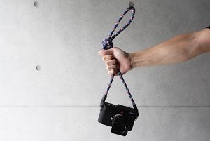 通常のカメラストラップよりやや長めに作られいて、ロープを結ぶ事によって長さを調節します。 大きく結べばハンドストラップとしても活用できるようになています。