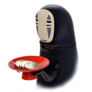 商品説明から・・・・カオナシが持っているお皿にコインを乗せると、むしゃむしゃコインを食べちゃいます♪コインを食べちゃう仕草がとっても奇妙でカワイイです!・既定の重さ(約30g前後)になると、カオナシの「あっ」という声の後に音楽が流れ出し、コインを食べます。食べ終わった後には、げっぷもする楽しい貯金箱♪・作中カオナシが料理を食べるシーンをイメージし、流れる音楽や音は映画の音声を使用しています!サイトには5月22日(月)から通常販売とありますが、瞬殺で売れてしまいそうです。