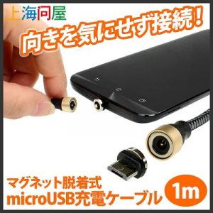 上海問屋から、どの向きでも接続できるマグネット着脱式 microUSB充電ケーブル 1m(マイクロUSB android)が発売されました。以前から発売されているマグネット着脱式 microUSB充電ケーブルの改良版で、マグネットの脱着部分が丸型になり、接続時に向きを気にしなくて良くなりました。