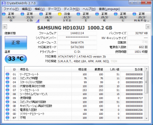 CrystalDiskInfo…一部のUSB-HDDやSSDにも対応したディスク情報表示ソフト