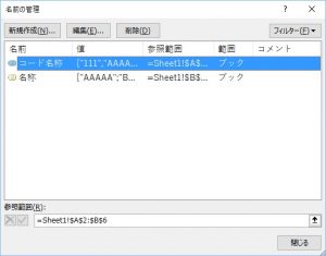 ↑こうすることで、参照先の表に行が追加されても、名称の参照範囲を修正するだけで済みます。