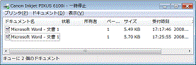 プリントデータは情報量が大きく、一端OSがスプール(プリント待ち一覧に入る。)します。その後、逐次プリンタに向けてデータを転送しますが、回線が不安定であったり、回線速度が遅い場合には印刷が途中で止まってしまいます。有線LANでは止まることは少なく、無線LANで接続している場合に止まることが多くなります。無線LANの親機(無線LANルーター)の性能(同時接続数、内蔵チップの性能)にも左右されるので、どうしても無線LANを使いたい場合には、無線LAN親機の買い換えや中継器の導入が必要です。 プリント待ち一覧 プリント待ち一覧